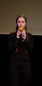 Po przerwie wysłuchaliśmy recytacji fragmentu z trzeciej księgi „Pana Tadeusza” w wykonaniu Malwiny Dubowskiej, uczennicy klasy drugiej. Utwór z repertuaru zespołu Pink „Dear Mr. President” zaśpiewała Hanna Mienik.