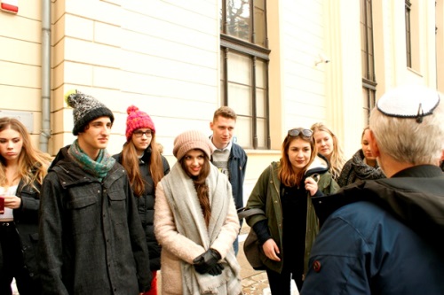 Pierwszy przystanek – zabytkowa synagoga Pod Białym Bocianem, która znajduje się mniej więcej 6 metrów od naszego punktu noclegowego, co wzbudza w nas podejrzenia podstępu kadry nauczycielskiej i zmusza do względnej przyzwoitości. Rozczulamy się bezwzględną szczerością oprowadzającego nas pana, który opowiada o najjaśniejszych i najciemniejszych personach żydowskiej wspólnoty – od Fritza Habera po Brunona Schulza. Niezwykle doceniam nagły zwrot akcji w napotkanej rzeczywistości i chwilowy zastój intelektualnej gloryfikacji wszystkiego, co mogłoby zostać uznane za nieprzyzwoite.