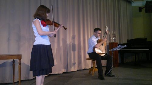 Po odśpiewaniu hymnu, na skrzypcach z gitarowym akompaniamentem zagrała nowa uczennica przyszłorocznej klasy 2x - Alicja Dziczek.